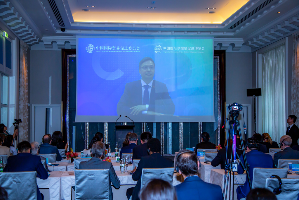 7月4日,中國國際供應(yīng)鏈促進博覽會(鏈博會)法國路演活動在巴黎成功舉行。中國國際貿(mào)易促進委員會副會長張慎峰、中國駐法國大使館經(jīng)商處公使沈翔、法中委員會秘書長林碧溪等中法嘉賓出席活動。