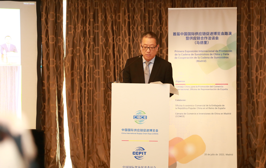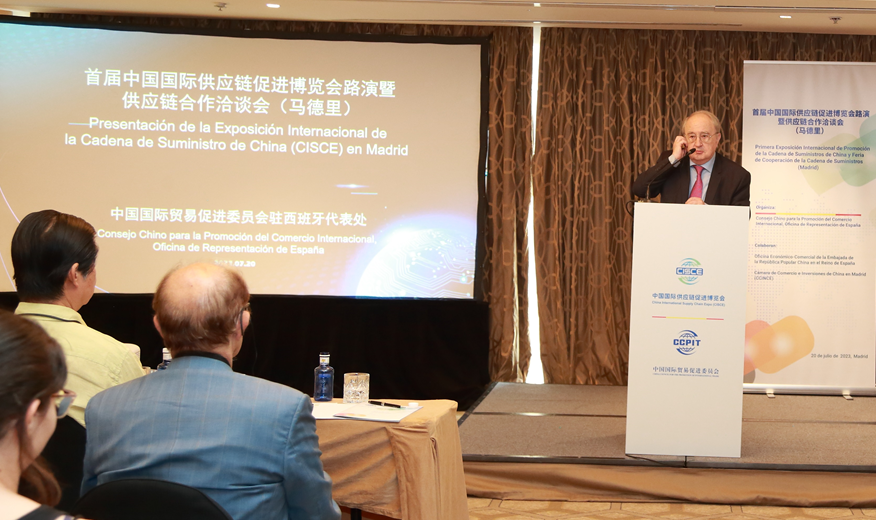 首屆中國(guó)國(guó)際供應(yīng)鏈促進(jìn)博覽會(huì)(以下簡(jiǎn)稱“鏈博會(huì)”)西班牙站路演7月20日在馬德里洲際大酒店成功舉行。來(lái)自西班牙的企業(yè)和部分在西中資企業(yè)現(xiàn)場(chǎng)參加會(huì)議,活動(dòng)由中國(guó)國(guó)際貿(mào)易促進(jìn)委員會(huì)駐西班牙代表處代表?xiàng)顝┣嘀鞒帧?/span>