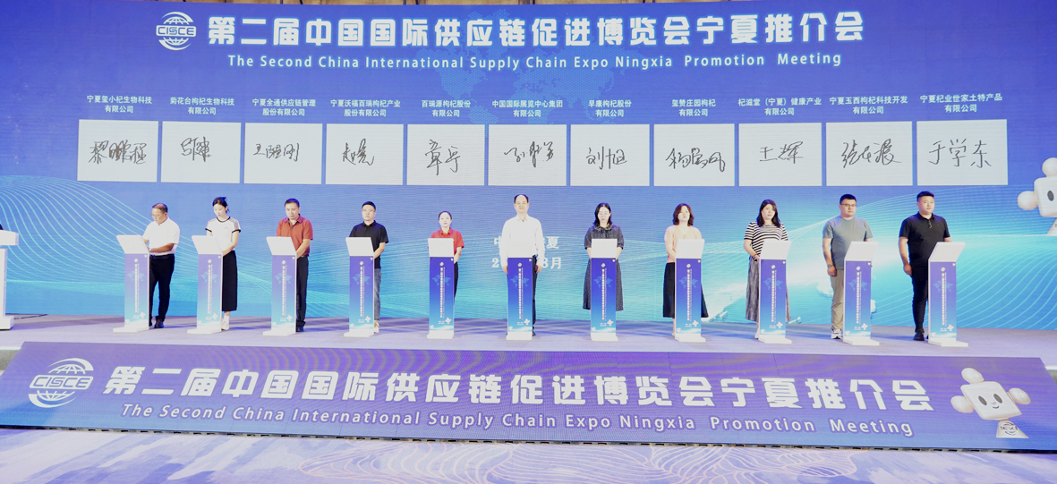 8月28日下午,第二屆中國國際供應(yīng)鏈促進(jìn)博覽會(huì)(以下簡稱“鏈博會(huì)”)寧夏推介活動(dòng)在銀川成功舉辦。寧夏“紫色名片”葡萄酒、“紅色名片”枸杞和寶豐能源、巨能機(jī)器人等22家重點(diǎn)企業(yè)與中國國際展覽中心集團(tuán)簽署參展協(xié)議。借助鏈博會(huì)這一重要平臺(tái),寧夏特色優(yōu)勢(shì)產(chǎn)業(yè)的“磁吸力”將得到有效釋放,進(jìn)一步促進(jìn)寧夏與全球產(chǎn)業(yè)鏈供應(yīng)鏈的深度融合。寧夏各有關(guān)單位、企業(yè)150余人參加推介會(huì)。