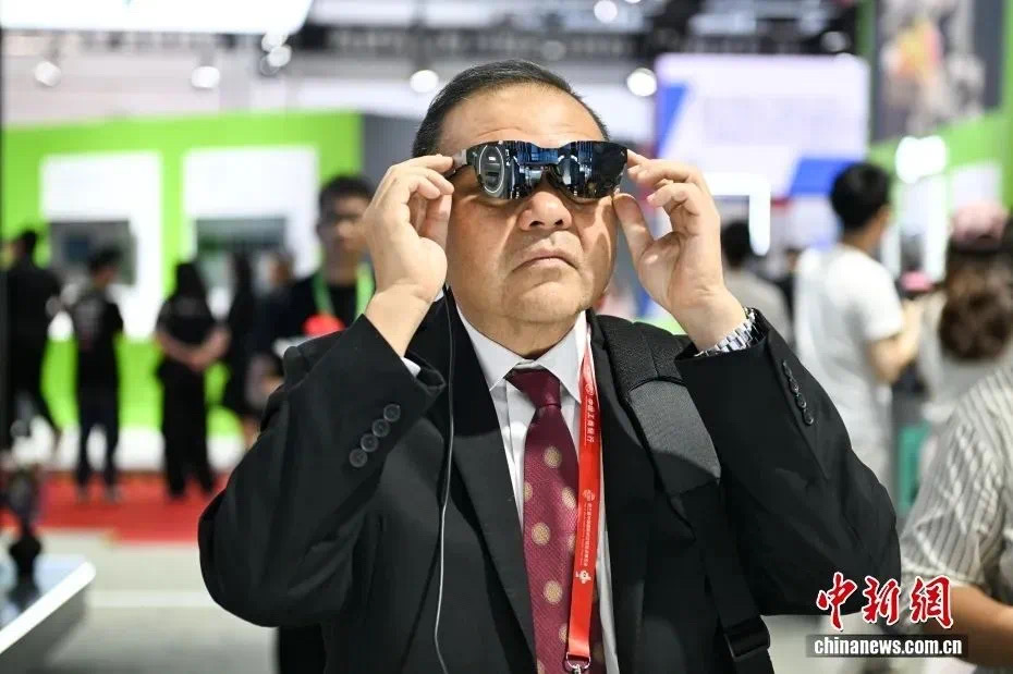 圖為觀眾體驗(yàn)雷鳥AI眼鏡。中新網(wǎng)記者 李駿 攝