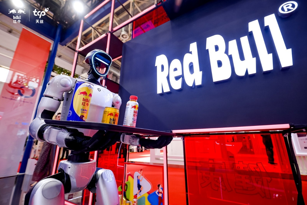 鏈博會(huì)期間天絲集團(tuán)展臺(tái)機(jī)器人派送紅牛飲料